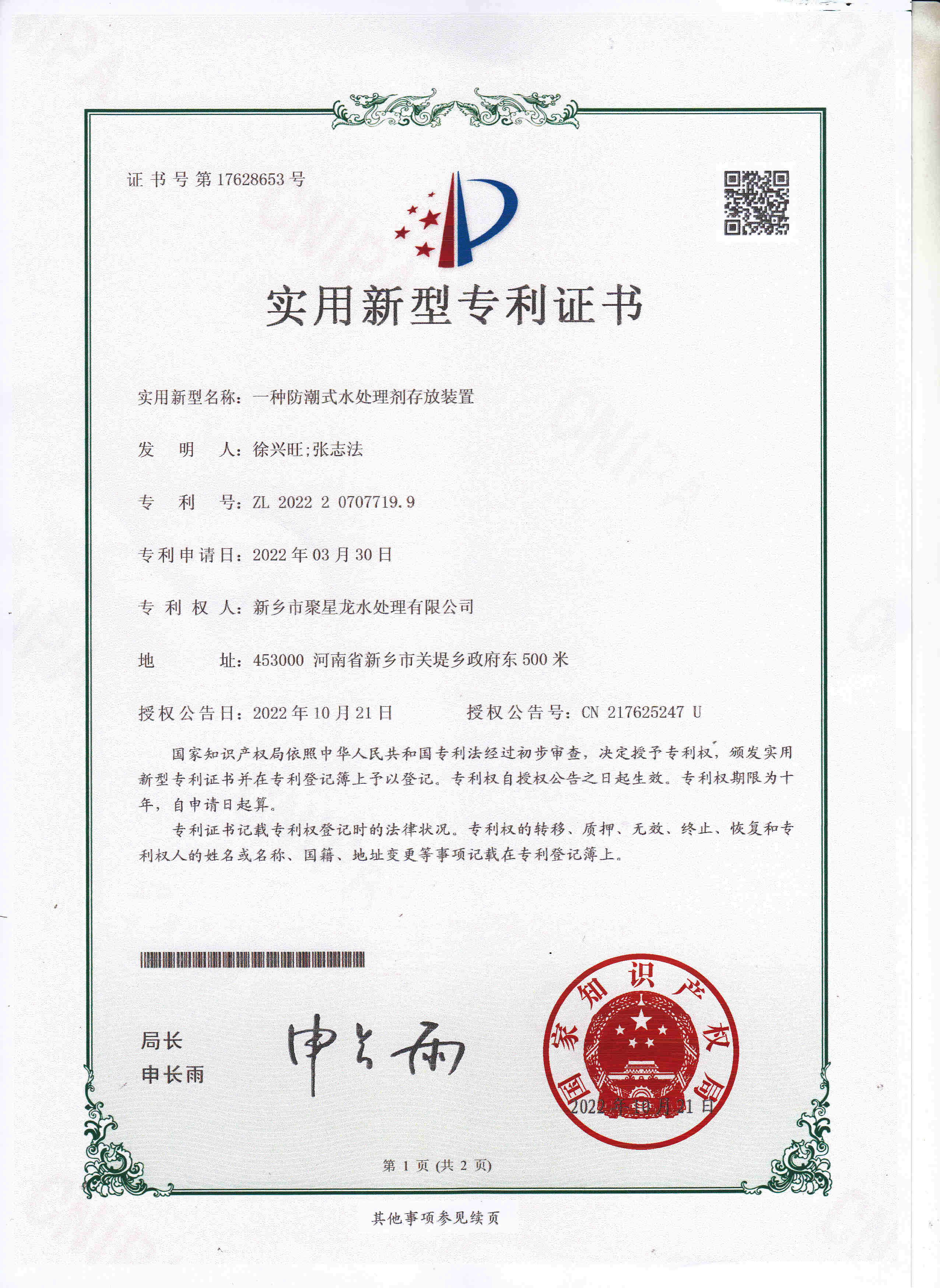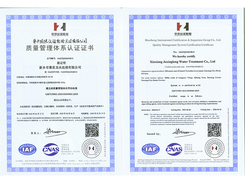 公司始建于1991年,占地18000m2。公司注冊(cè)商標(biāo)為‘聚星龍’。公司是以生產(chǎn)水處理藥劑、水處理技術(shù)和市場(chǎng)服務(wù)為主體的綜合性企業(yè)。產(chǎn)品銷往國(guó)內(nèi)和國(guó)外市場(chǎng),年生產(chǎn)水處理藥劑萬(wàn)噸以上,是目前國(guó)內(nèi)較大、產(chǎn)品較全的水處理藥劑生產(chǎn)廠家之一。產(chǎn)品共九大系列30多個(gè)品種,廣泛用于火力發(fā)電、石油、鋼鐵冶煉、印染、造紙、污水處理等行業(yè)。